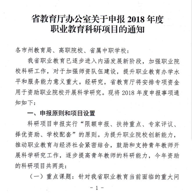 省教育厅办公室关于申报2018年度职业教育科研项目的通知.pdf