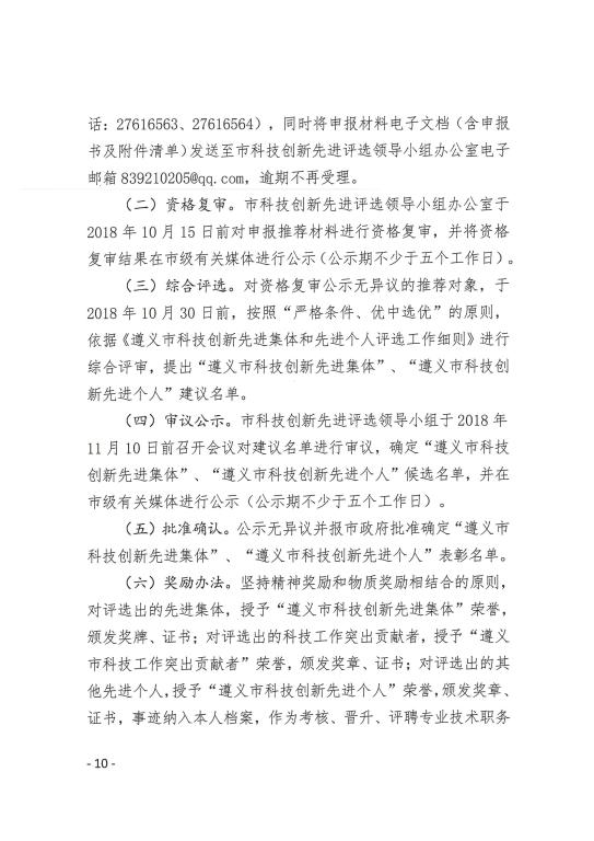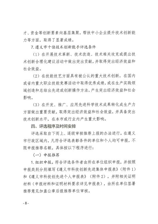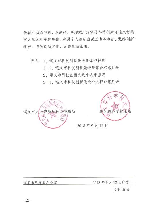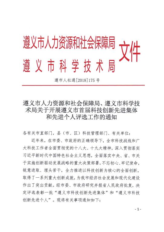 遵义市人力资源和社会保障局、遵义市科技局关于开展遵义市首届科技创新先进集体和先进个人评选工作的通知