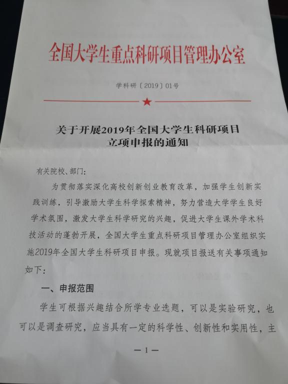 关于开展2019全国大学生科研项目立项申报的通知