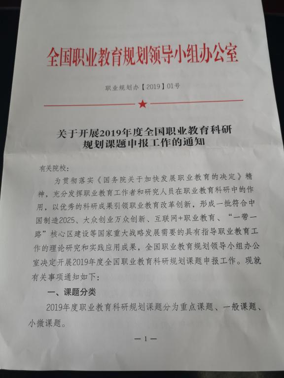 关于开展2019年度全国职业教育科研规划课题申报工作的通知