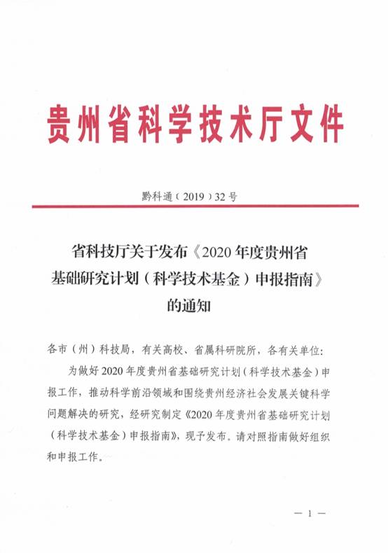 转发省科技厅关于发布《2020年度贵州省基础研究计划(科学技术基金)申报指南》的通知