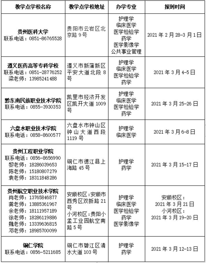 根据届时疫情防控工作要求,报到时间及方式如有变化,将在“贵州医科大学成人继续教育学院微信公众号”及“贵州医科大学成人继续教育学院官网”另行通知。