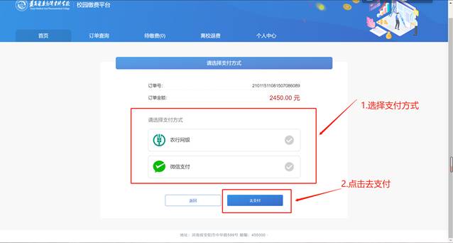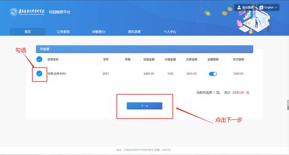 3、选择缴费科目、点击下一步4、选择支付方式,点击去支付