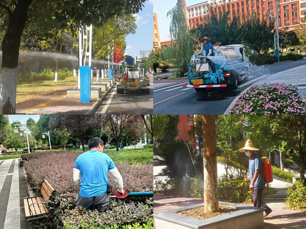 为了营造整洁、干净、优美的校园环境,物业服务中心对校园进行了全方位、无死角的清理打扫,绿化养护和垃圾清运全程无休,努力营造绿色美观的生态校园。