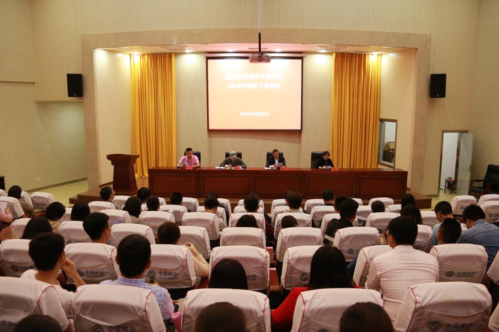 4月23日下午,我校在图书馆学术报告厅召开新学期团学工作会议。学校党委副书记张武晓、各相关职能部门负责人、各教学系部负责人及分管学生工作人员、辅导员、团总支学生主要干部和校系学生会主席团成员,团委、学生处工作人员参加会议。学校党委宣传部部长黄学军主持会议。
