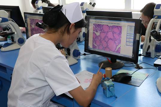 2019年4月25日,基础部在解剖楼606、608多媒体显微镜互动教室开展了2018级学生“组胚学镜下结构绘图大赛决赛”。出席本次比赛的领导有:校党委委员、副校长岳应权,基础部党总支书记冉启国,基础部党总支副书记黄源镜,基础部副主任陈哲洪。基础部解剖教研室全体教师参加了本次活动。