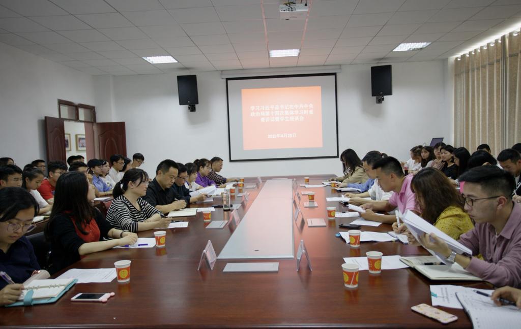 4月25日下午,我校在药学系204会议室召开学习习近平总书记在中共中央政治局第十四次集体学习时的重要讲话精神暨学生座谈会,深刻学习领会五四运动的历史意义和五四精神的时代内涵。我校党委副书记张武晓、各系党总支书记、校团委全体教师以及各系团总支指导老师、学生干部代表参加会议。会议由校团委副书记刘炼秋主持。