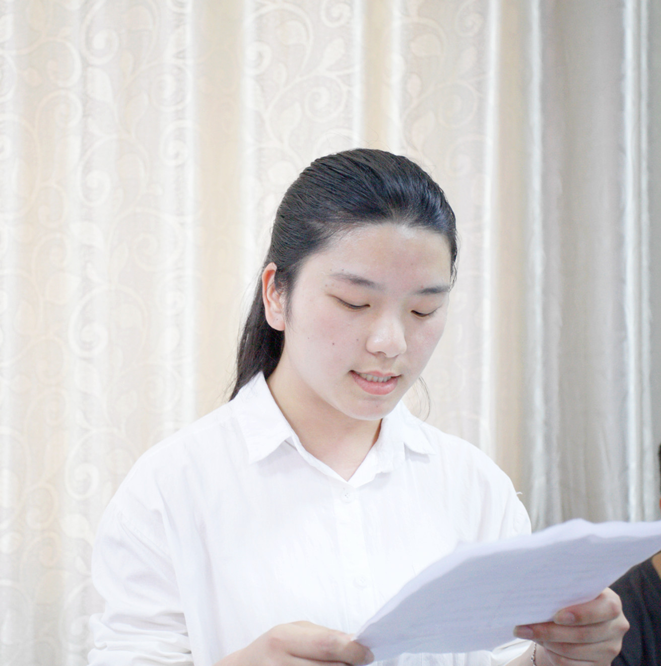 “弘扬‘五四’精神,要求我们青年一代具备高度的社会责任感,热爱祖国,拥护党的领导……”。
