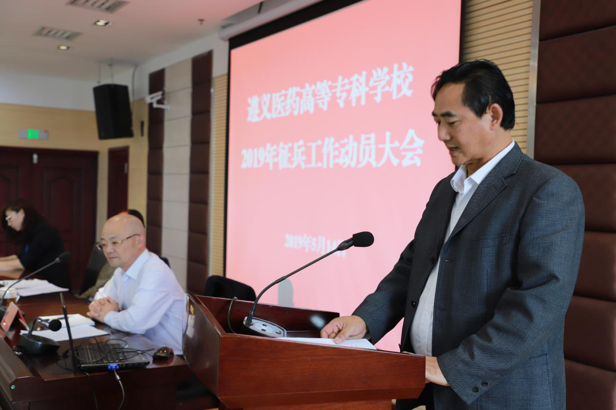 会议伊始,杨权勇作2019年征兵动员报告,详细介绍了遵义医高专武装部《关于印发大学生应征入伍管理的通知》。接着,临床系党总支副书记冯育会作征兵工作表态发言,卫生管理系党总支书记李发建作2018年征兵工作经验交流,辅导员代表护理系朱衡在大会上分享了她动员学生应征入伍的典型案例。