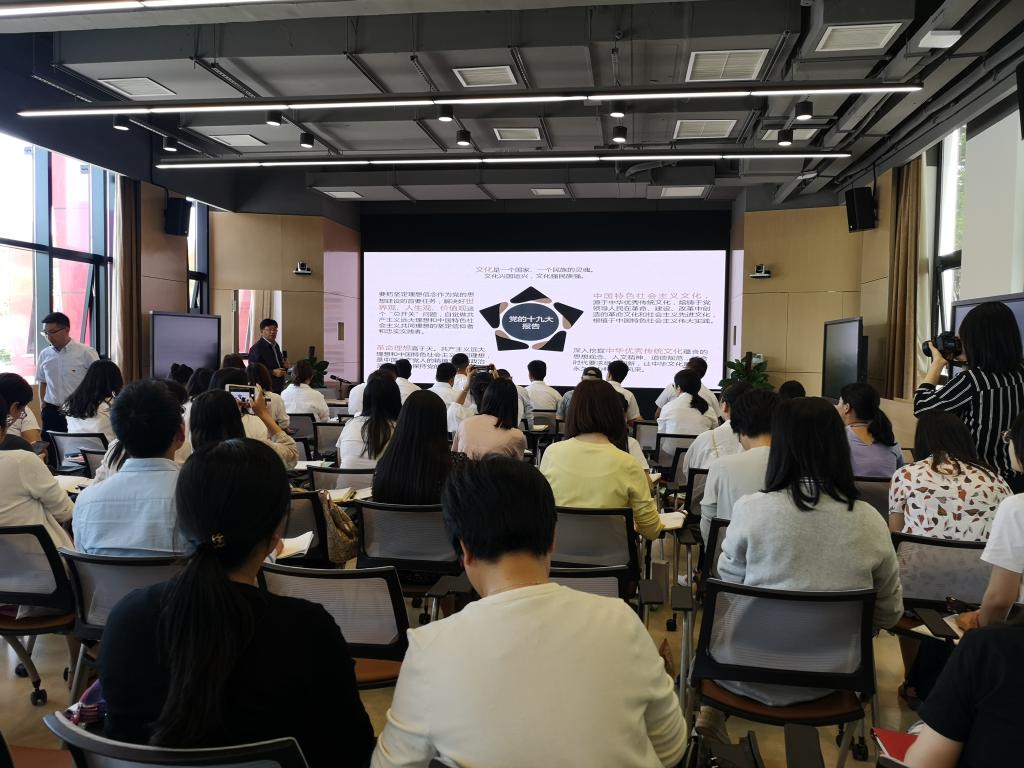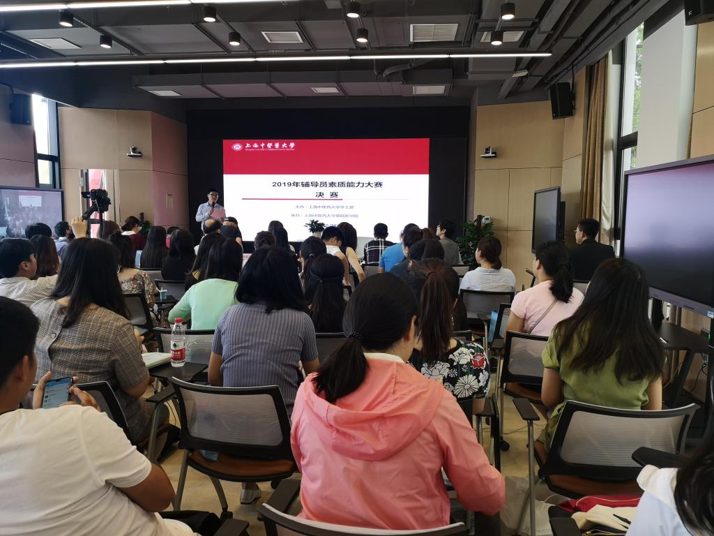 | 学员们认真聆听“上海中医药大学2019年辅导员素质能力大赛” |
