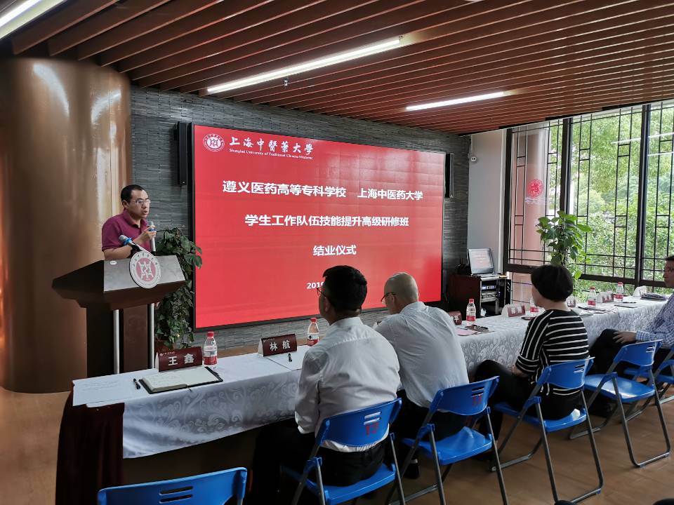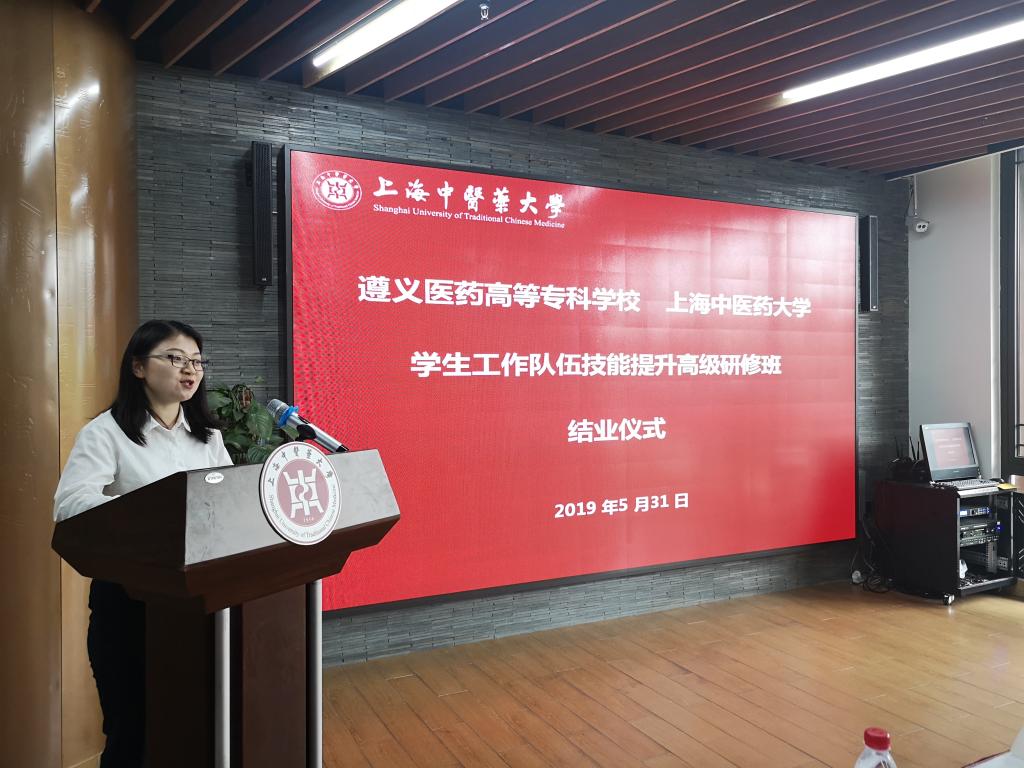 大会对此次学生工作队伍技能提升高级研修班学习情况给予了高度评价,表扬了我校学生工作队伍能吃苦、肯钻研,勤奋好学,上课守纪律,课后还积极与上海中医药大学部分教师学习交流,共同探讨工作中的疑惑,充分展示了遵义医高专教师的精、气、神。希望学员们能将在上海中医大学的学到的知识学以致用,推动学校学生工作上台阶、上水平。