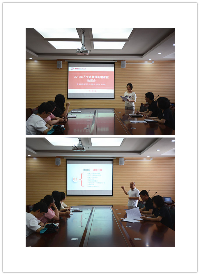 会上,主讲老师分别从课程开设的必要性、目的、意义和自身的优势等方面向与会领导和老师进行了详细的介绍和论证。与会人员在听取介绍并审阅授课计划书的基础上对新增设的两门课程的教学目标、计划和教学方法等方面提出了宝贵的意见和建议,原则上同意钟华老师主讲的《民族复兴路上的印记》和赵平平老师主讲的《大学语文》两门课程作为2019—2020学年人文选修课新增课程。