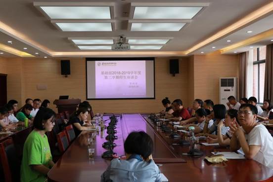 为进一步落实“以生为本”的教学理念,征求学生对基础部课程教学工作的意见和建议,全面了解基础部教师教学情况,更好地服务学生,基础部于2019年6月24日下午召开了师生座谈会。校党委委员、副校长岳应权出席了会议,基础部党总支书记冉启国、基础部党总支副书记黄源镜、基础部教务科科长郭丽娜、基础部办公室主任范瑶、各教研室主任及2018级学生代表参加了座谈。会议由基础部副主任陈哲洪主持。