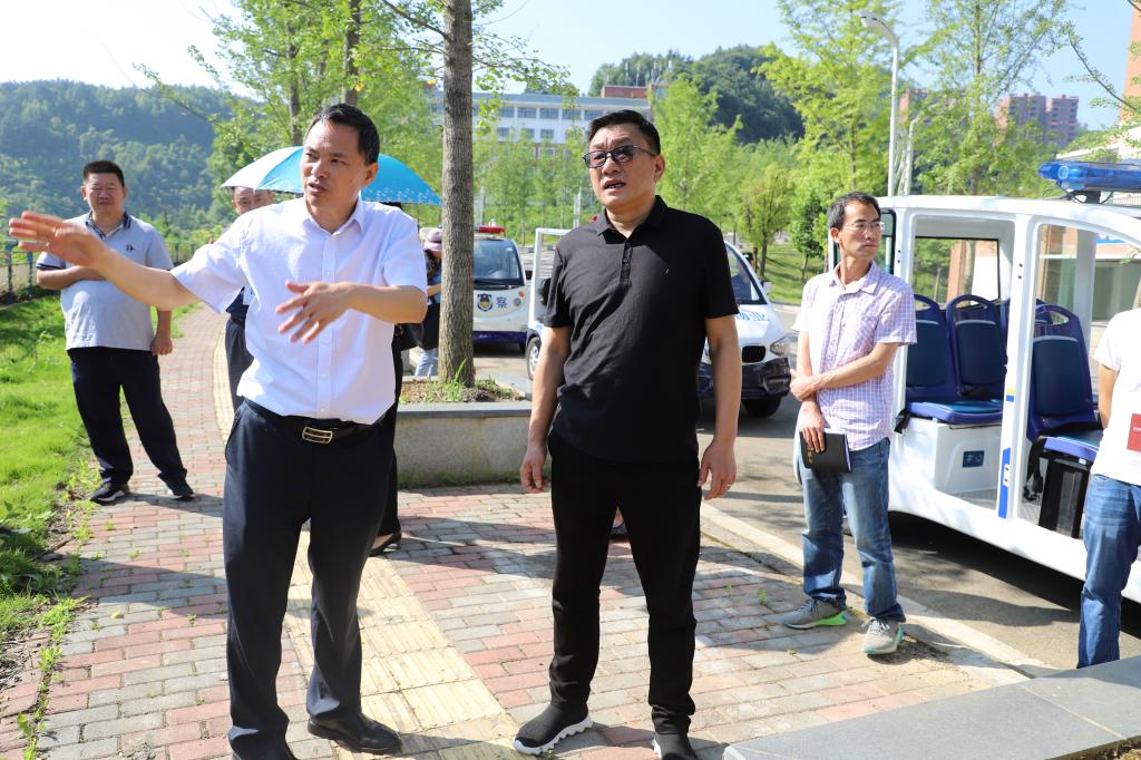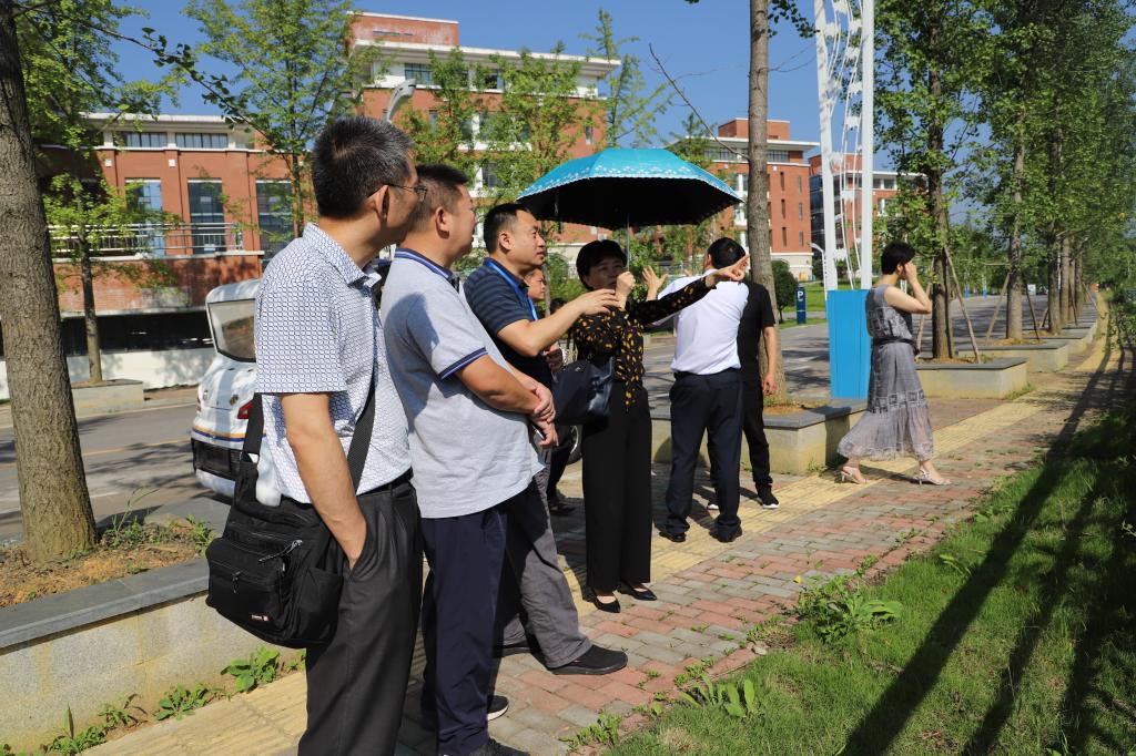 徐晓东一行先后考察了学校北门、风雨操场、知行大阶梯、图书馆、各教学系部。