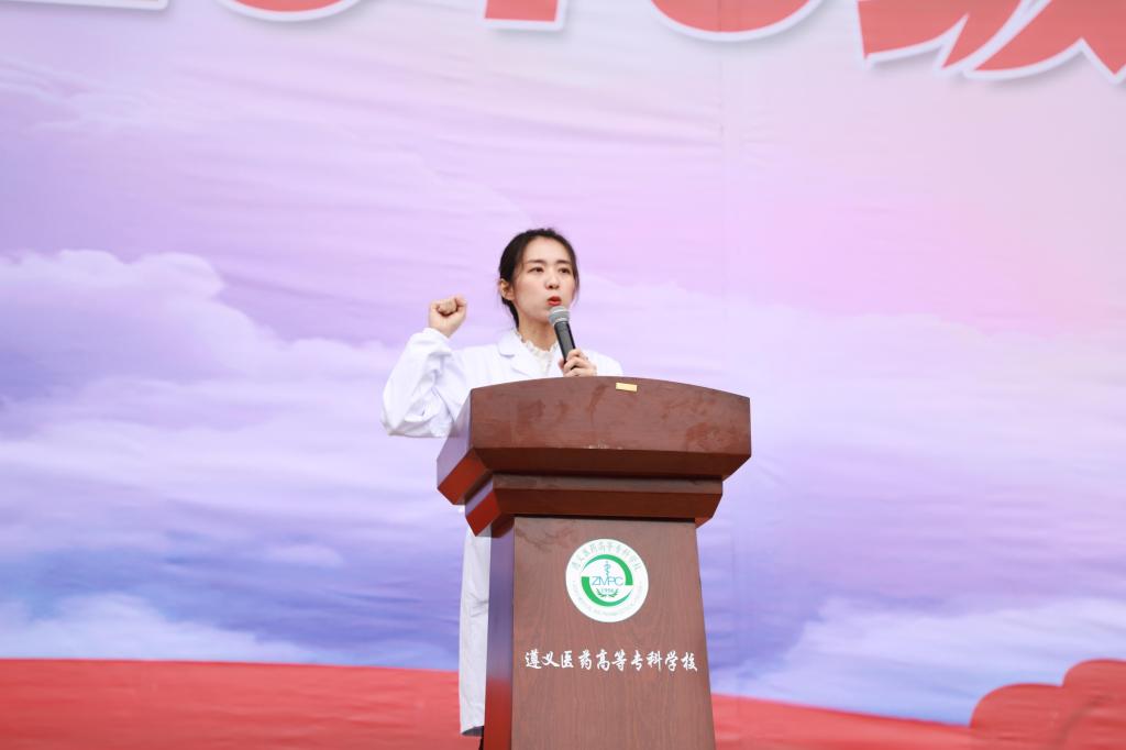 临床系教师何耀带领医学生宣誓,铮铮誓言表达了全体师生为服务大医药大健康、筑牢基层医疗卫生网底,成为一名新时代合格的医疗卫生工作者而奋斗终生的初心和使命。