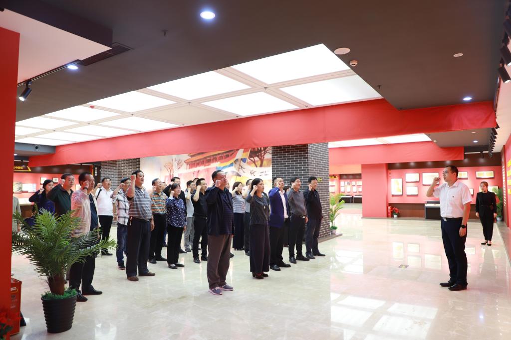 在参观结束时,所有领导干部在鲜红的党旗下庄严宣誓,重温入党誓词,进一步牢记宗旨,坚定理想信念,锤炼忠诚、干净、担当的政治品格,牢记嘱托、感恩奋进。
