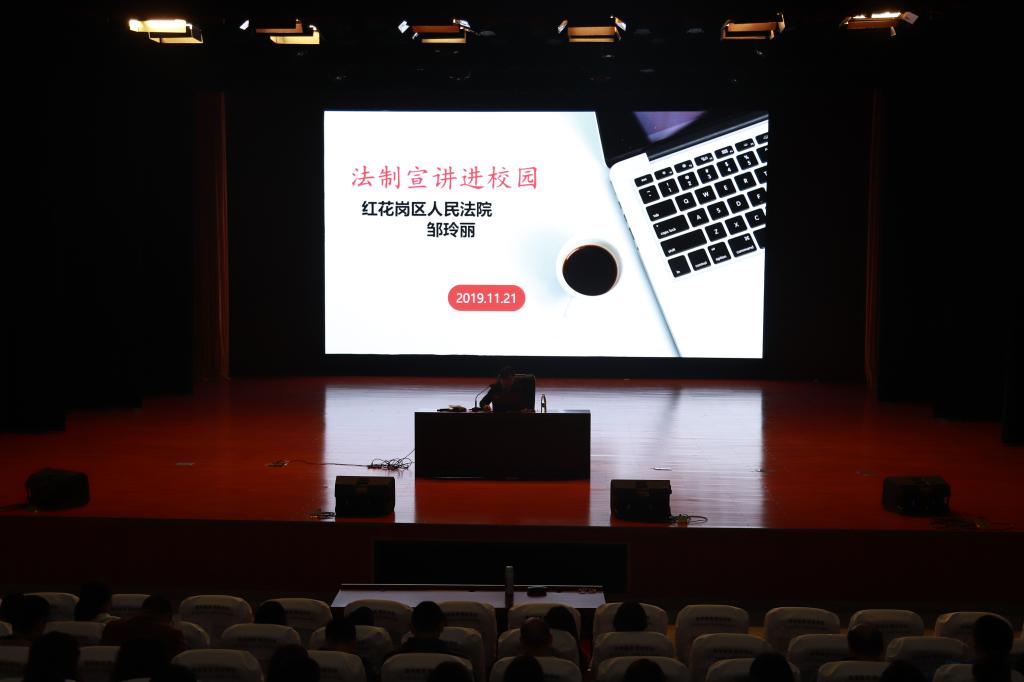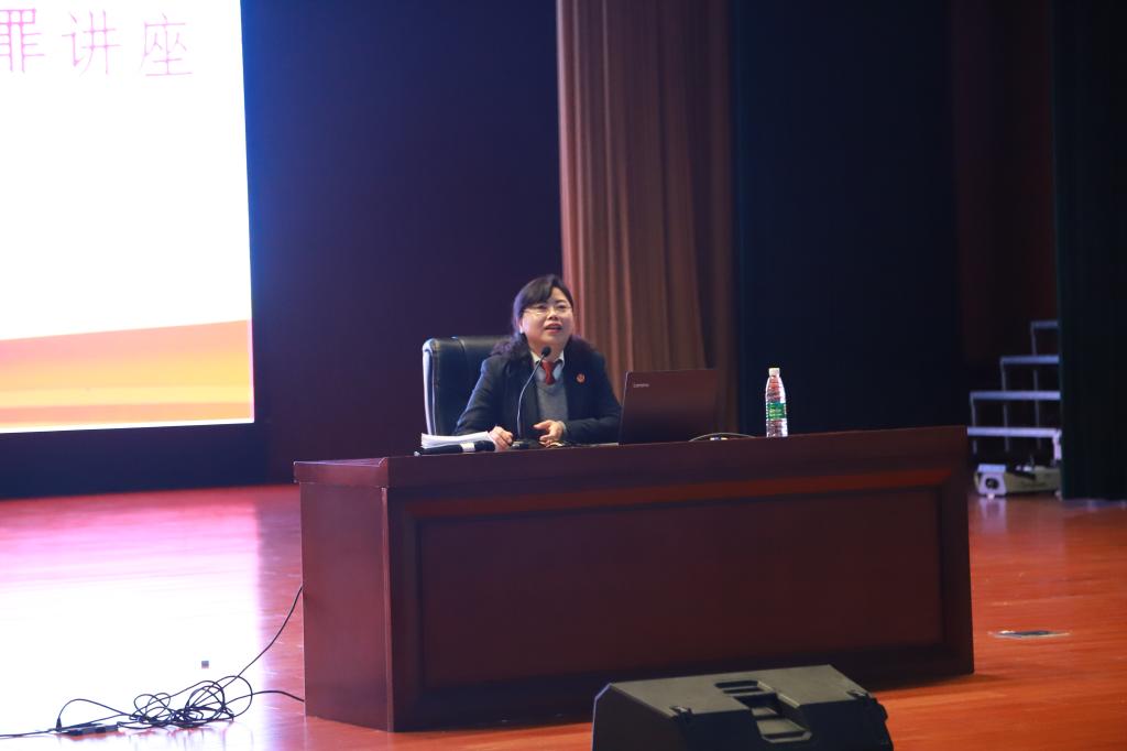 此次讲座邀请了红花岗区人民法院办公室副主任邹玲丽法官主讲,她用大量生动的实例,讲解了故意杀人罪、故意伤害罪、寻衅滋事罪、诈骗罪、敲诈勒索罪的量刑标准,列举了在生活中因法盲、义气用事、酗酒冲动等犯罪所带来的不良后果,敲响了大学生应该提高自己的法治思维能力,自觉遵守法律和法规的警钟。同时,邹玲丽审判员也介绍了大学生自身权益受到侵害的时候,如何拿起法律的武器进行自我保护的基本知识。她强调,法律源于生活,是社会生活的游戏规则,大学阶段是人生的起跑线,大学是社会的训练场,学会用法律武器维护自身权益,不仅是当代大学生必须具备的个人素质和修养,更是公民的权利和义务。