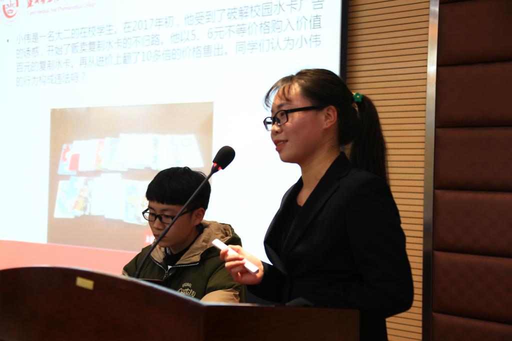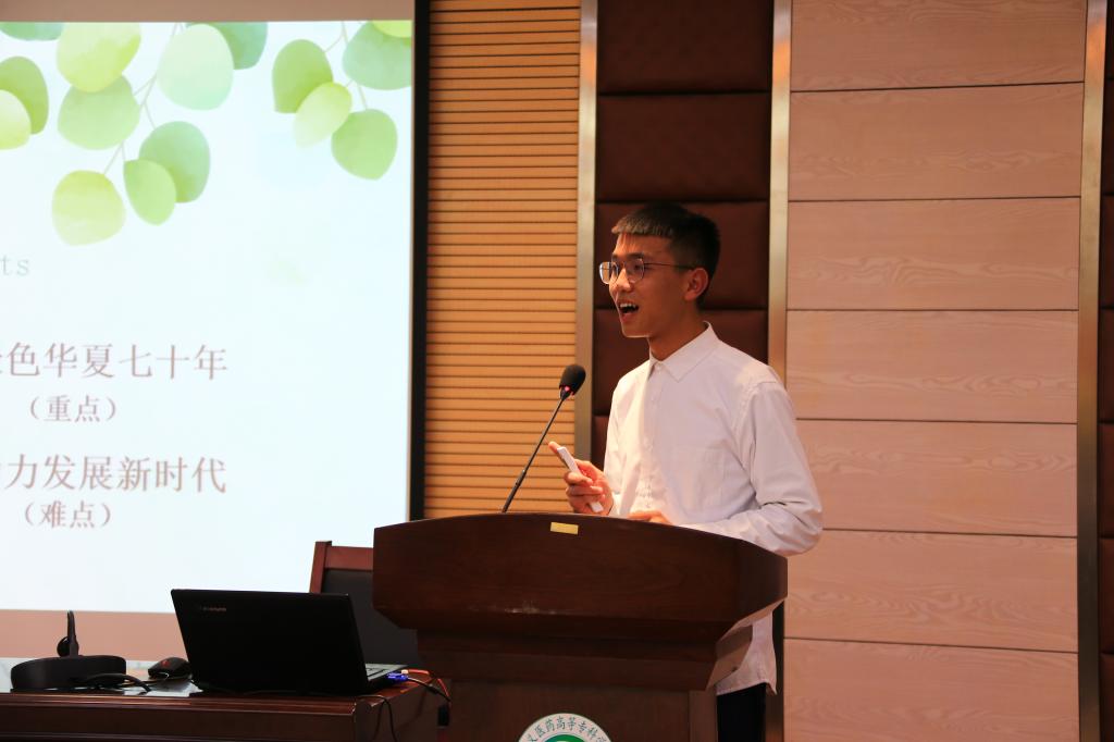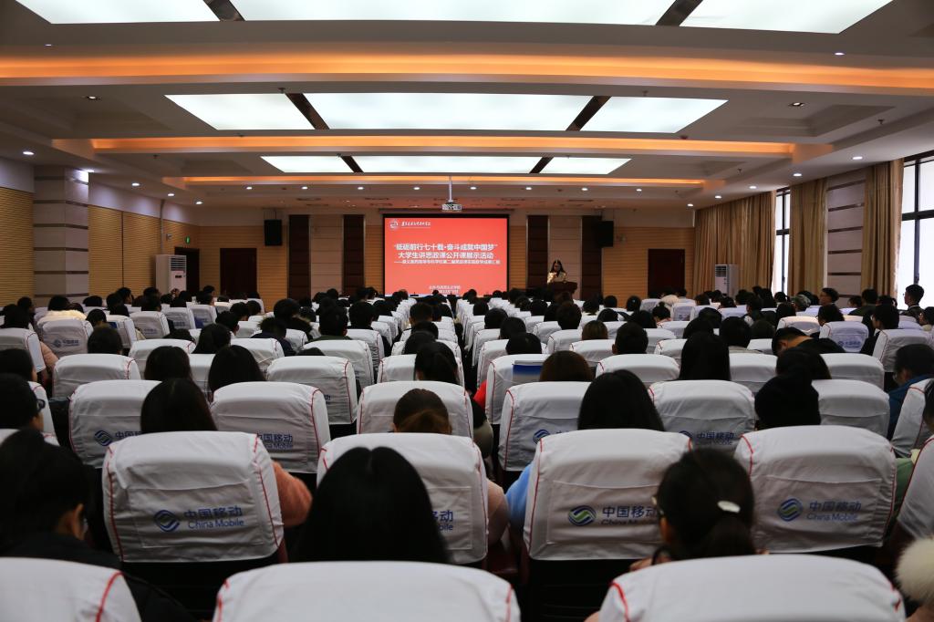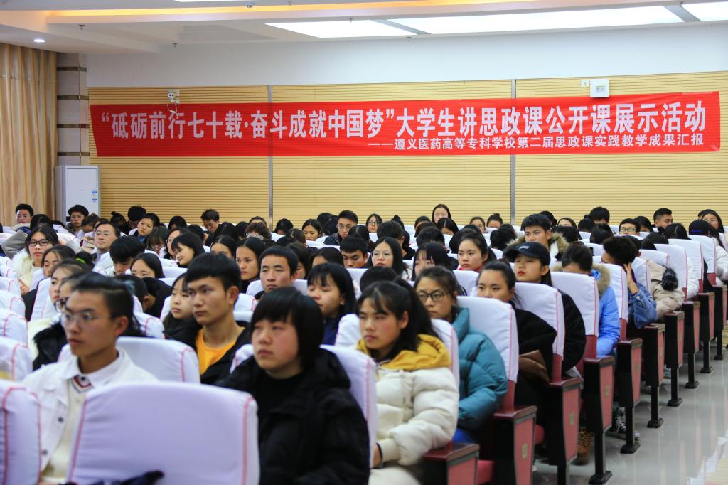 为全面推动习近平新时代中国特色社会主义思想进教材进课堂进学生头脑,根据《教育部社科司关于开展习近平新时代中国特色社会主义思想大学习领航计划系列主题活动的通知》(教社科司函〔2019〕85号)等相关文件要求,12月19日下午,由我校马克思主义学院主办的“砥砺前行七十载·奋斗成就中国梦”大学生讲思政课公开展示活动在综合楼1008会议室举行,此次展示活动邀请学校教务处处长郭家林、临床系党总支副书记冯育会、护理系副主任钟正伟、中医系副主任董小君、卫管系公共卫生管理教研室主任张洁担任评委,马克思主义学院院长邓山、副院长王峰以及马院全体教师参加活动。