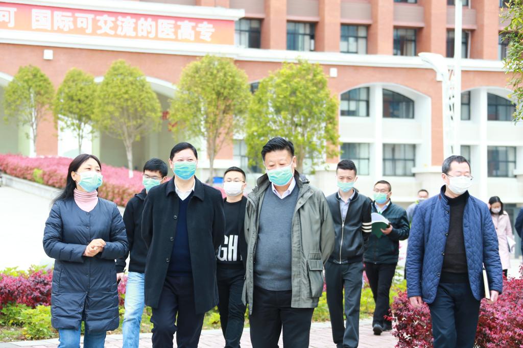 赵廷昌一行实地调研学校疫情防控工作,听取了孙逐关于学校师生基本情况以及学校疫情防控工作情况汇报,详细了解开学前准备情况,对坚守在一线为学校开学准备工作做了大量努力的教职工表示衷心感谢。并对学校开学工作提出几点要求:一是认真贯彻落实习近平总书记以及中央、省委、市委关于新冠肺炎疫情防控的系列指示精神;二是坚持做到“三不”原则,也就是在疫情防控没有得到基本控制之前不开学,学校防控措施不到位不开学,学校安全和师生的公共卫生安全得不到保障不开学。三是守住、守好、守牢学校这块阵地,守护好学校师生的身体健康和生命安全;四是充分发挥医学院校的专业优势做好疫情防控工作;五是不断优化完善疫情防控工作方案,力求措施更严密、考虑更周全、物资准备更充足,以最完备无误的方案、最扎实深入的作风做好开学准备工作。