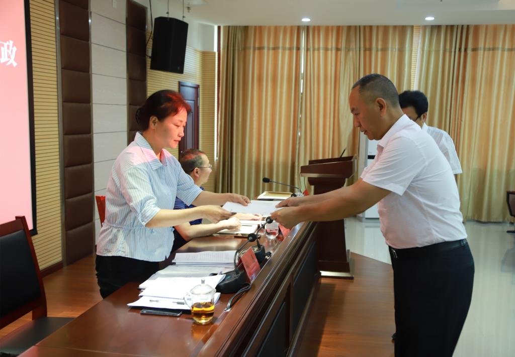 学校领导班子成员向党委书记孙逐同志递交责任书,二级部门和教学系、部(院)向分管(联系)校领导递交责任书。