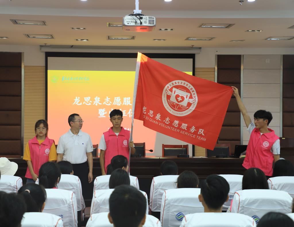 7月4日下午,学校在综合楼1008会议室举行龙思泉志愿服务队授旗暨出征仪式。学校校长范奇元,宣传部、团委负责人,服务队指导老师以及全体志愿者参加本次活动。仪式由宣传部副部长于忠元主持。
