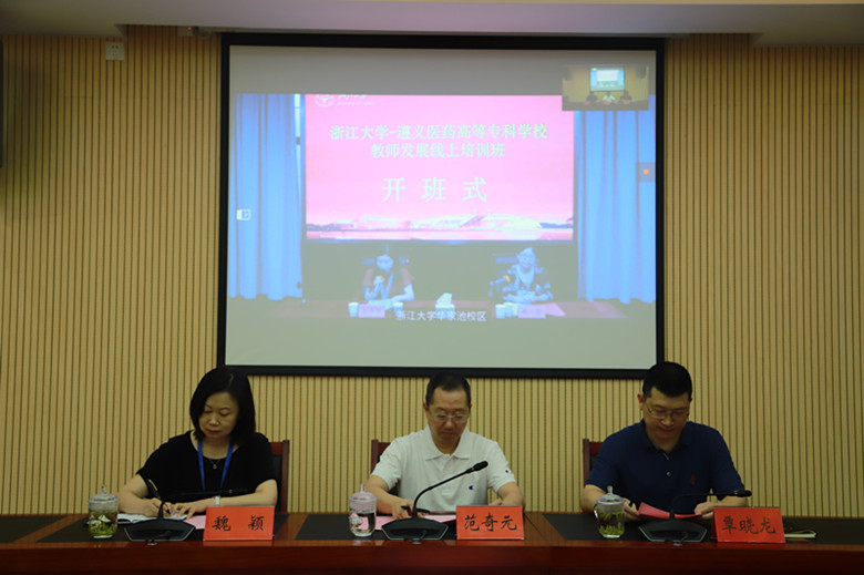 2020年7月6日上午,我校与浙江大学继续学院联合举办的教师发展培训班在综合楼933会议室正式开班。浙江大学继续教育学院副院长姚青,西南区培训部副主任祖小翠,校长范奇元,党委委员、副校长覃晓龙,组织人事处处长魏颖出席开班仪式。