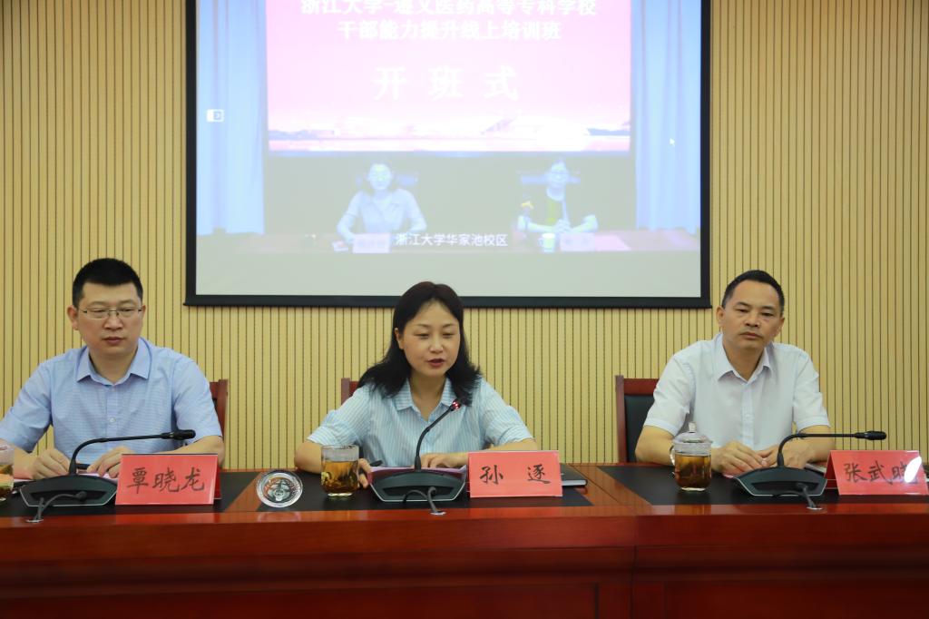 7月9日上午,学校与浙江大学继续教育学院联合举办的“学校干部能力提升线上培训班”在综合楼933会议室正式开班。校党委书记孙逐,党委副书记张武晓,党委委员、副校长覃晓龙,浙江大学继续教育学院副院长姚青出席开班仪式。