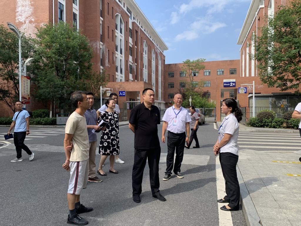 岳应权副校长先后对学生食堂的开餐准备与食品安全、食堂地面防滑改造工程、学生宿舍暑期维修工程、临时隔离点准备、青教公寓接待中心筹备、物业公司保洁消毒、防疫物资准备等方面的工作完成情况进行了检查。