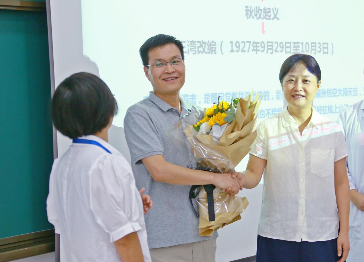 会上,学生代表朗诵诗歌《致敬“烛光”》,新进教师在覃晓龙副校长的带领下进行教师誓词宣誓,在家党政领导班子向30年教龄教师献花并颁发证书,学生代表合唱《天天向上》,展现了青年学生的蓬勃朝气、意气风发。