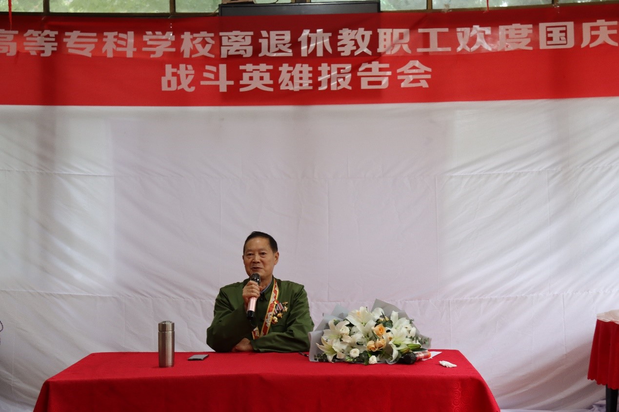 活动在战斗英雄报告会中拉开了序幕。一级战斗英雄、我校离退休第三党支部书记张仁明同志结合自己的战斗经历和军旅生活,与大家分享了主题为“岁月静好的背后”这一主题报告,岁月静好,是有人在负重前行,保卫国家的和平。他图文并茂地讲述着对越反击战、扣林山反击战,一幅幅战火洗礼的画面,一段段感人至深的故事,在场老师无不为之动容,纷纷鼓掌。