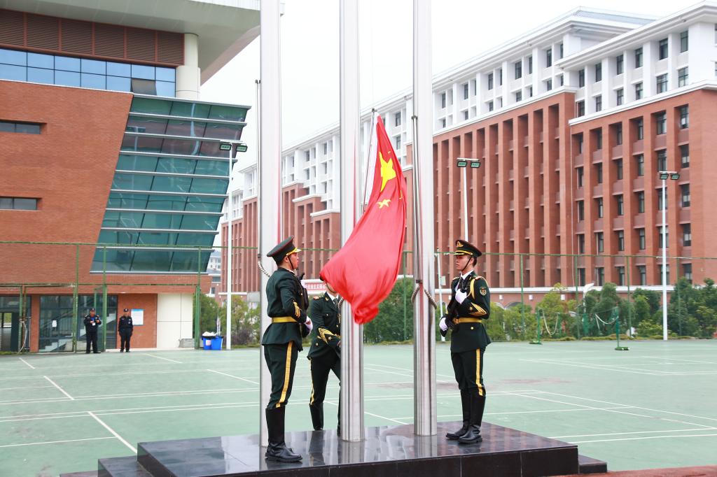 | 开学典礼在庄严的国歌中拉开序幕 |