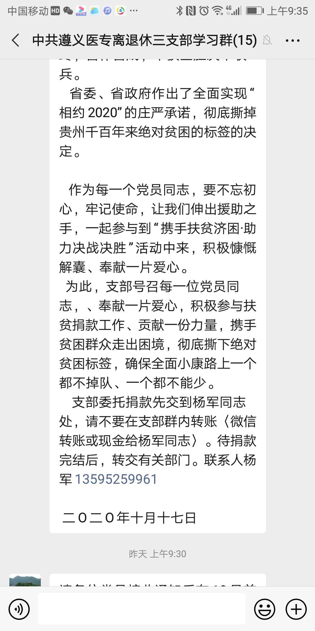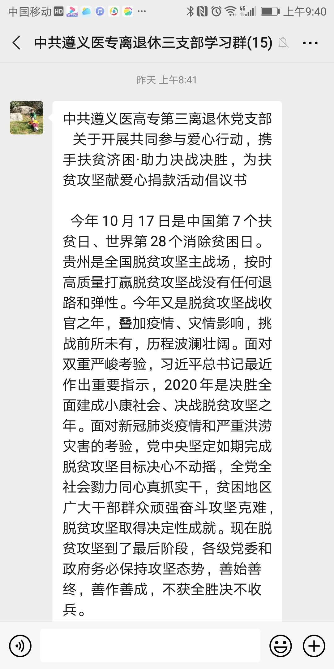 在我国第7个扶贫日、世界第28个消除贫困日来临之际,10月17日离退休第三党支部开展“携手扶贫济困助力决战决胜”活动,自发向支部全体党员发起“扶贫日”捐款倡议。
