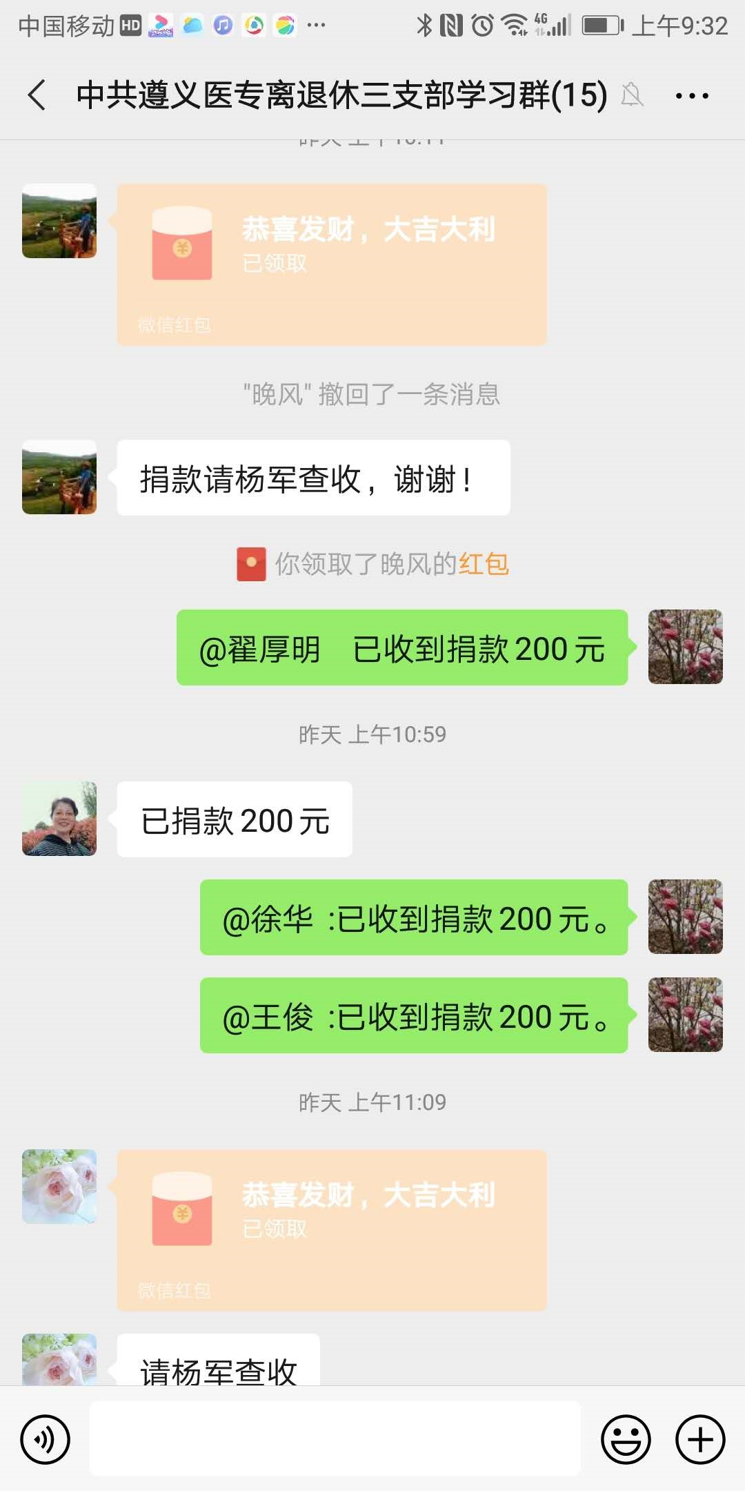 一时间,老党员们纷纷响应号召,积极捐款。一些老同志不会使用微信转账,也都想方设法让子女代其转账捐款。