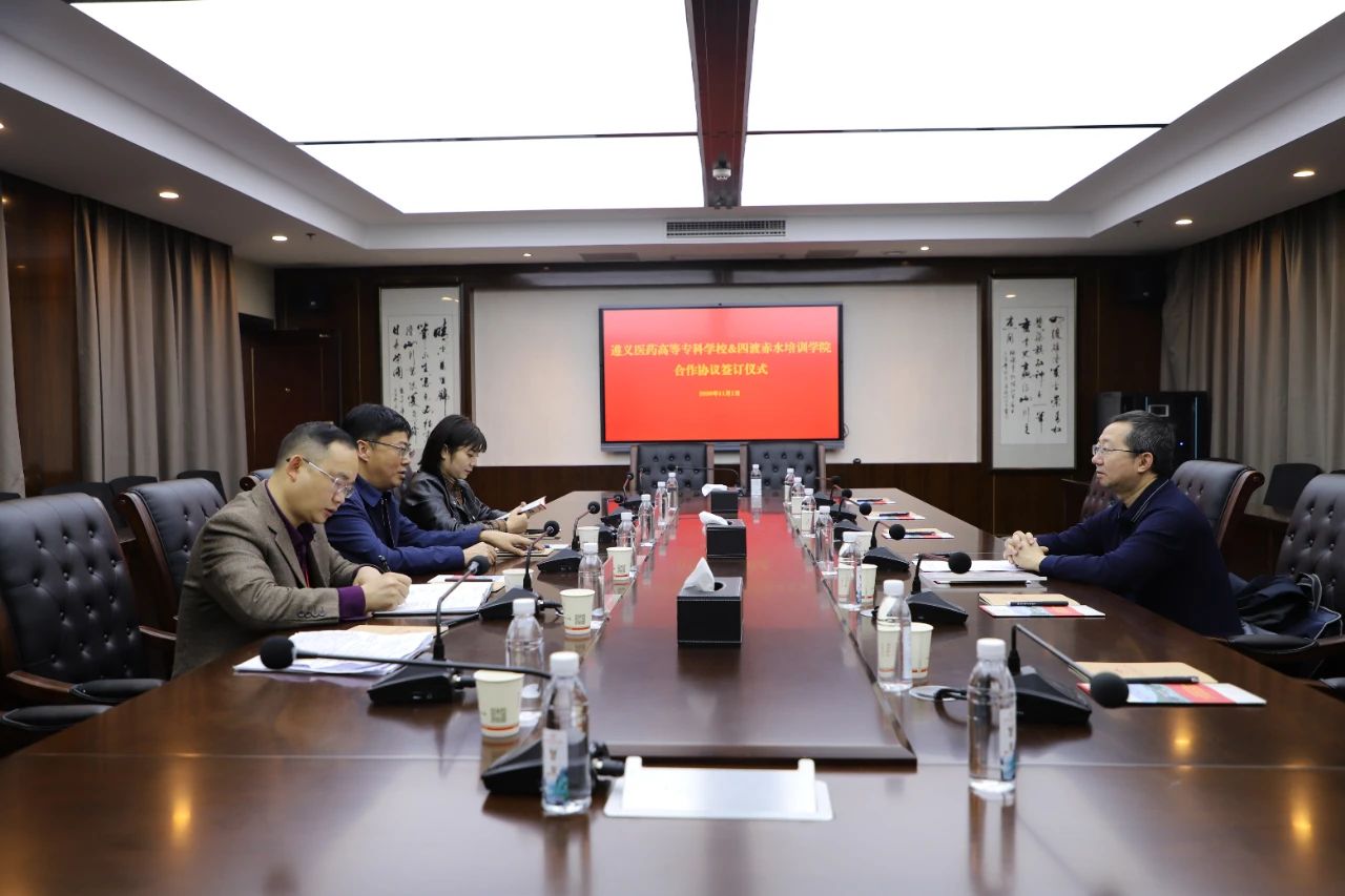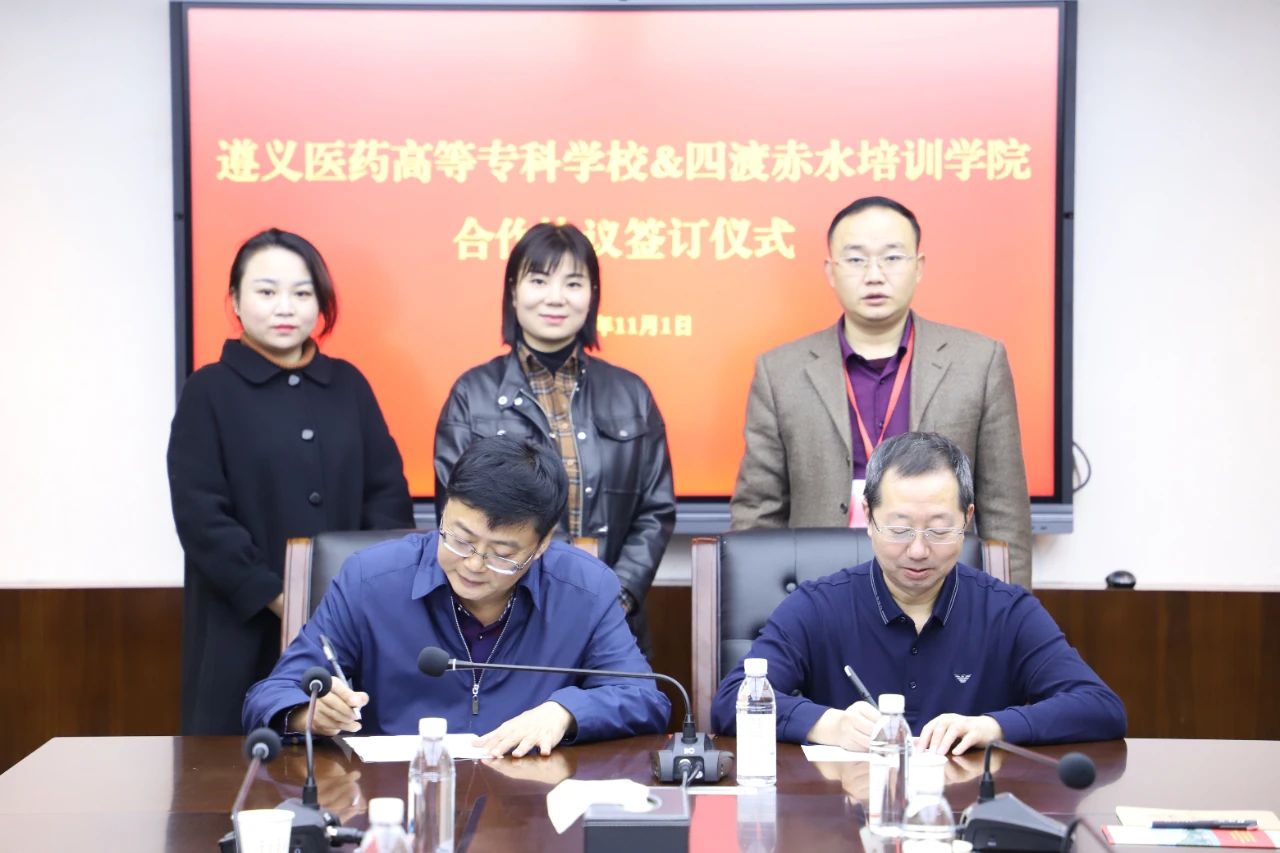 为进一步全面贯彻落实习近平总书记关于“传承红色基因,讲好遵义故事”的重要指示精神,加强新时代医务工作者思想政治教育,坚定信念跟党走,增强社会责任感,厚植爱国主义情怀。2020年11月1日,我校校长范奇元到赤水与四渡赤水培训学院签订合作协议。