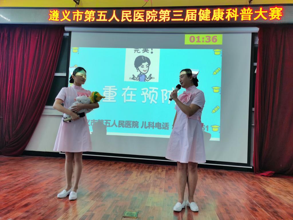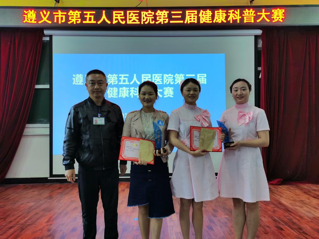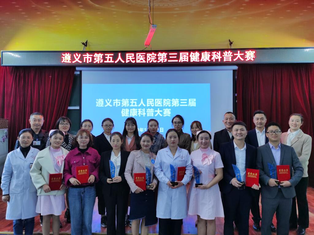 为弘扬科学精神、普及科学知识,推进我院市级科普教育基地建设,挖掘、培育和储备健康科普传播人才,营造健康知识传播氛围。11月12日遵义市五医举办了第三届医学(健康)科普大赛。为确保比赛结果的公平公正,本次大赛特邀请了科教文卫系统院外专家担任评委,院领导及全院职工观看了比赛。