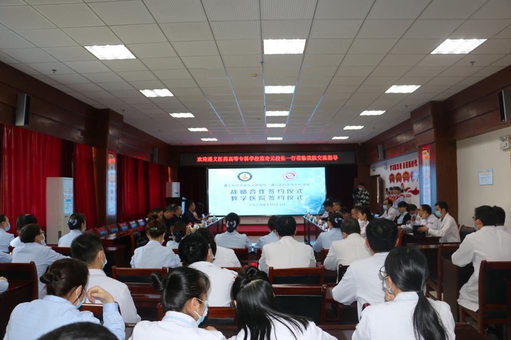 仪式由红花岗区人民医院副院长何斌主持。何斌副院长介绍了红花岗区人民医院的学科建设、人才团队、先进设施、优质服务等,希望双方深入合作,共同发展。范奇元校长介绍了学校的发展历程、师资队伍、教学科研等方面的情况,希望双方以这次合作为契机,加强交流,在师资培养、人才输送、项目研发等方面开展全方位、深层次的合作,实现互利共赢。范奇元校长与何斌副院长“签订了校院战略合作协议”和“教学医院协议书”,并在医院的门诊小广场共同为教学医院揭牌。