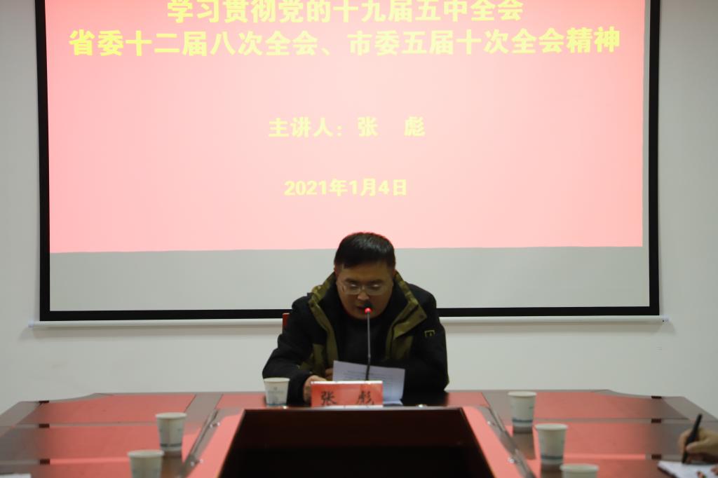 1月4日下午,学校党委委员、副校长张彪在综合楼943会议室宣讲党的十九届五中全会、省委十二届八次全会、市委五届十次全会精神,对外交流部、继续教育处、保卫处、科研处及中医系全体党员同志到会聆听。