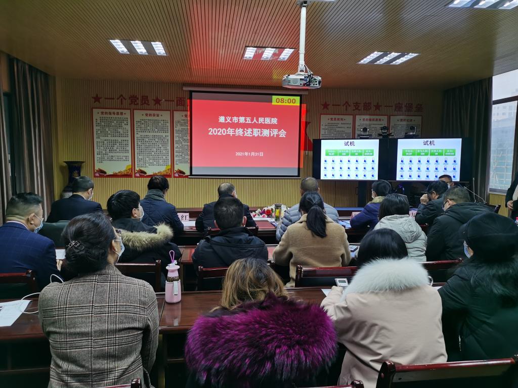 1月31日,学校附院(市五医)在内科楼6楼会议室举行了2020年度中层干部述职述廉现场考评会,会议由院党委书记、院长王平主持,院班子、全体中层干部按照疫情防控要求有序参加会议。