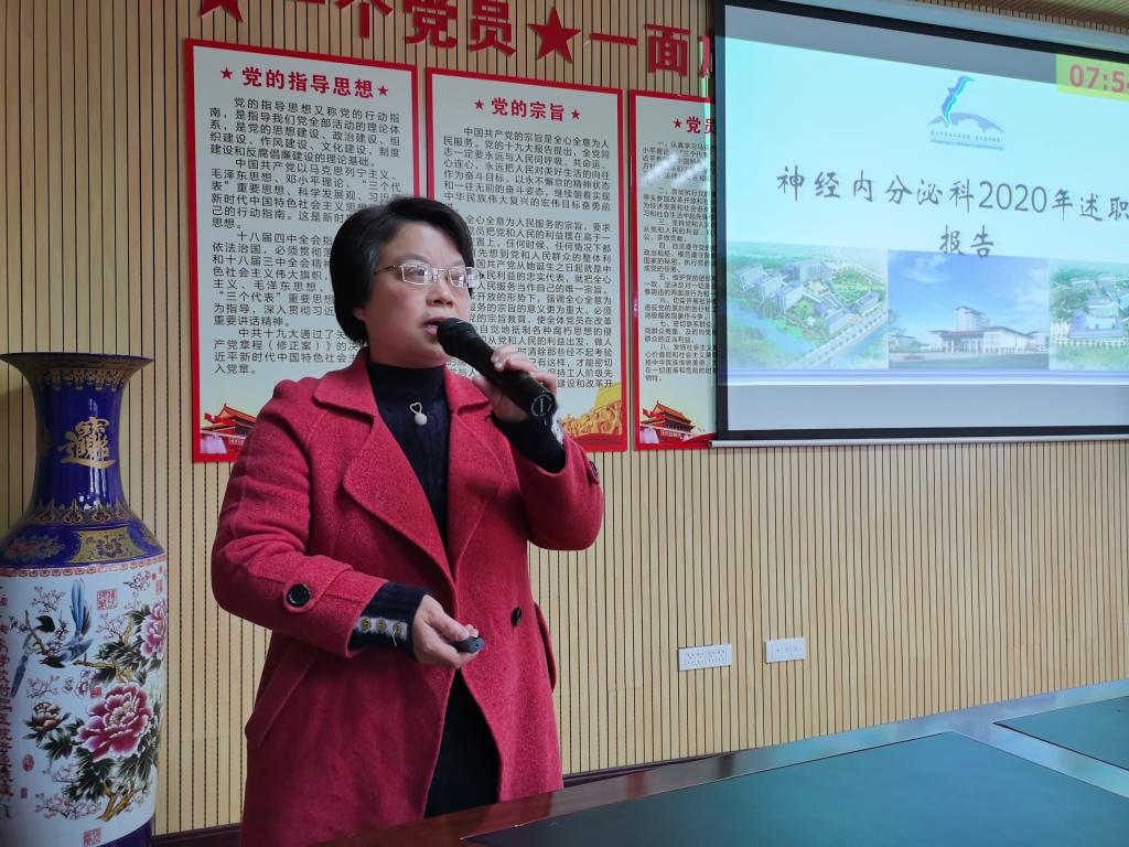 会上,全院40个临床医技及行政后勤科室负责人从本年度党风廉政建设情况、具体工作开展情况等方面,通过量化数据、图片展示等多种形式,展现了一年来科室在新冠肺炎疫情常态化防控、科室重点工作、主要业务指标、学科发展目标、人才梯队建设、质量与安全管理等工作,实事求是地分析工作中的短板和不足,并就做好2021年度工作提出具体思路。每位中层干部述职结束后,与会人员通过测评器对述职人员的工作态度、2020年履职情况及工作亮点、2021年工作计划及工作思路等方面进行民主测评,互相打分。