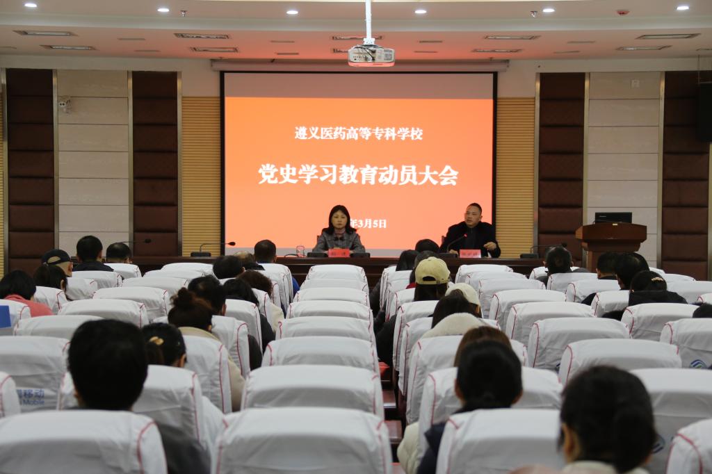 3月5日,学校在综合楼1008会议室召开党史学习教育动员大会,校党委书记孙逐出席会议并讲话。她说,在全校开展党史学习教育要坚持以习近平新时代中国特色社会主义思想为指导,深入学习贯彻习近平总书记视察贵州重要讲话精神和中央、省委、市委党史学习教育动员大会精神,传承红色基因,讲好遵义故事,教育引导全校党员学史明理、学史增信、学史崇德、学史力行,学党史、悟思想、办实事、开新局,以昂扬姿态投入“双高”校建设,把我校建设成为本科层次的职业院校不懈奋斗,以优异成绩庆祝建党100周年!