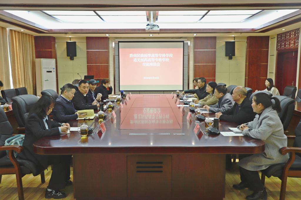 会上,双方围绕“双高计划”中的党的建设、专业群建设、人才培养、师资队伍建设、校企合作、附属医院建设等方面进行了交流座谈。会后,黔南民族医学高等专科学校一行参观了学校药学系和中医系。