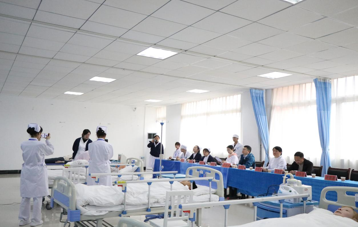 贵州省教育厅将于今年4月举办全省职业院校护理技能大赛,我系按省教育厅和学校要求大力开展备赛工作,学校领导高度重视,护理系组织参赛教师组和参赛选手前期进行了刻苦认真的操作训练,4月19日在护理系B栋三楼综合实训室进行了第一次演练,学校党委委员、副校长覃晓龙亲临现场指导,护理系主任罗仕蓉,副主任唐布敏、钟正伟,教务科科长安晓倩,实训中心主任刘丹丹参加演练会。