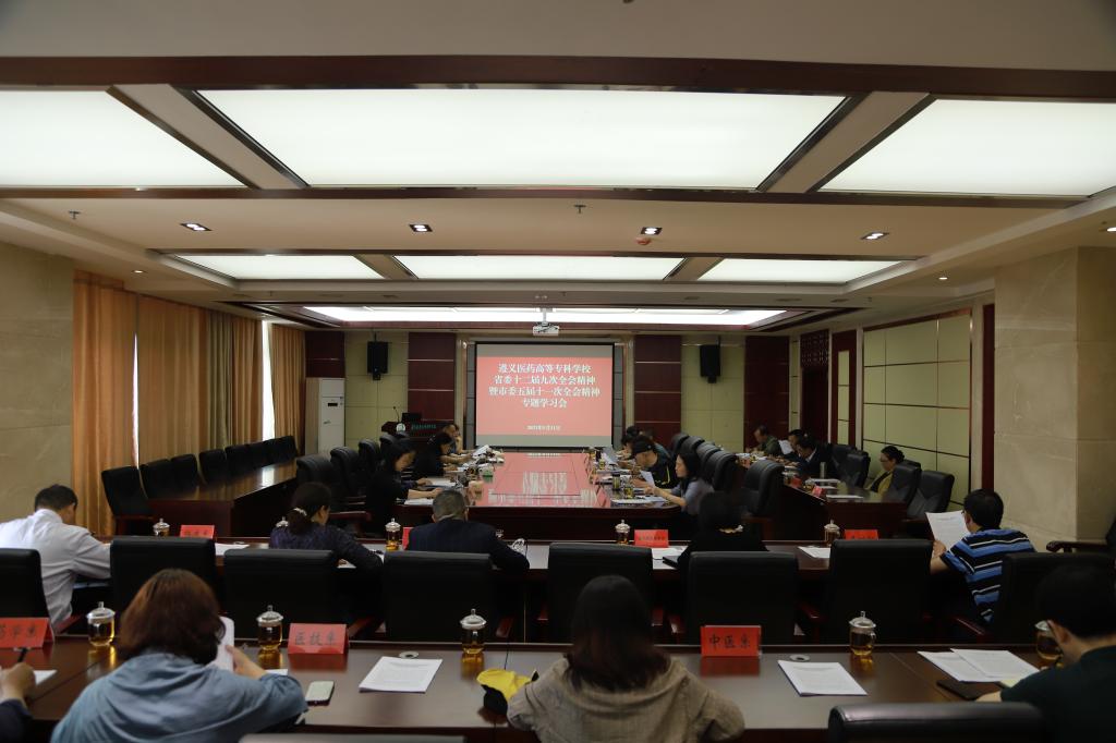 5月11日上午,学校召开省委十二届九次全会精神暨市委五届十一次全会精神专题学习会,学校在家党政班子成员、各处(室)负责人、系(部、院)党政负责人参加学习,会议由学校党委书记孙逐主持。