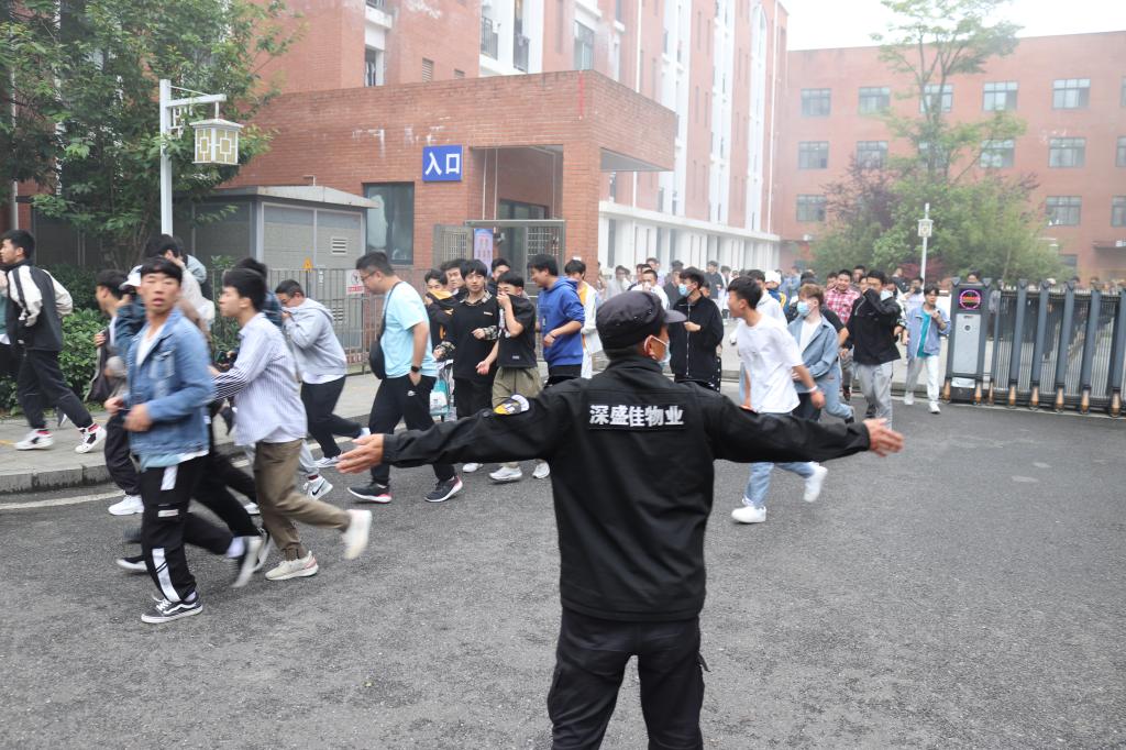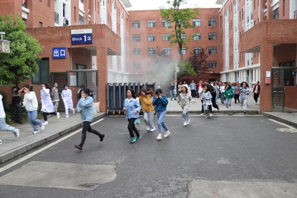 为切实增强我校学生应急逃生意识,提高学生自救互救的能力,使广大学生在地震、火灾等突发事件中做到安全有序、及时有效地撤离事故现场,减少、避免伤亡事故发生。2021年5月18日13:00时,我校在学生宿舍组织开展了2500余名师生参与的防灾减灾疏散演练活动。此次活动由保卫处、学生处、后勤管理处、宣传部、团委、各系(部)党总支书记、全体辅导员、物业公司等联合组织,活动由学校党委委员、副校长张彪任演练总指挥。