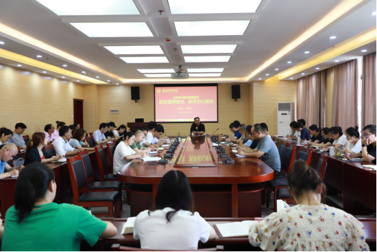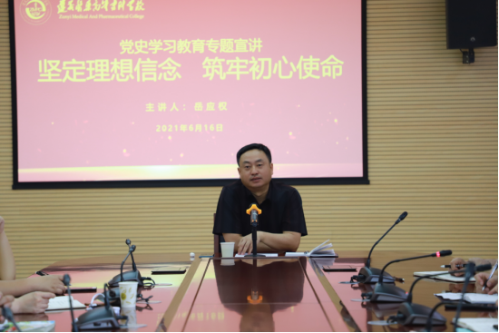 为增进对中国共产党为什么“能”、马克思主义为什么“行”、中国特色社会主义为什么“好”的认识和理解,坚定理想信念、筑牢初心使命,2021年6月16日15:00,校党委委员、副校长岳应权在综合楼737会议室开展以《坚定理想信念筑牢初心使命》为主题的党史专题宣讲,基础部、后勤处、图书馆、网络信息中心等部门全体教职工到会聆听,宣讲会由基础部党总支副书记黄源镜主持。