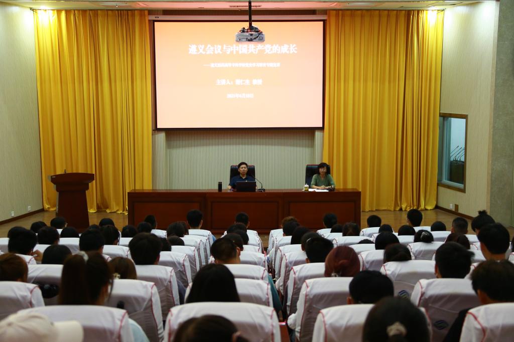 按照市委党史学习教育工作安排及市委党史学习教育领导小组办公室《关于做好全市基层党史专题宣讲工作的通知》文件要求,6月18日下午,党史学习教育市委宣讲团成员、遵义医科大学人文医学研究中心主任谢仁生教授做客我校思泉讲习堂,为我校师生作题为《遵义会议与中国共产党的成长》的党史学习教育专题宣讲,学校350余名师生代表在图书馆学术报告厅聆听了谢仁生教授的专题宣讲,此次宣讲由学校党委委员、宣传部部长黄学军主持。