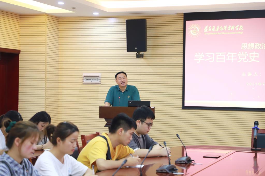 7月7日,校党委委员、副校长岳应权给医学技术系医学检验专业20052304班学生上主题为“学习百年党史,培育时代新人”的思想政治理论课。本次课程由基础部党总支副书记黄源镜主持。