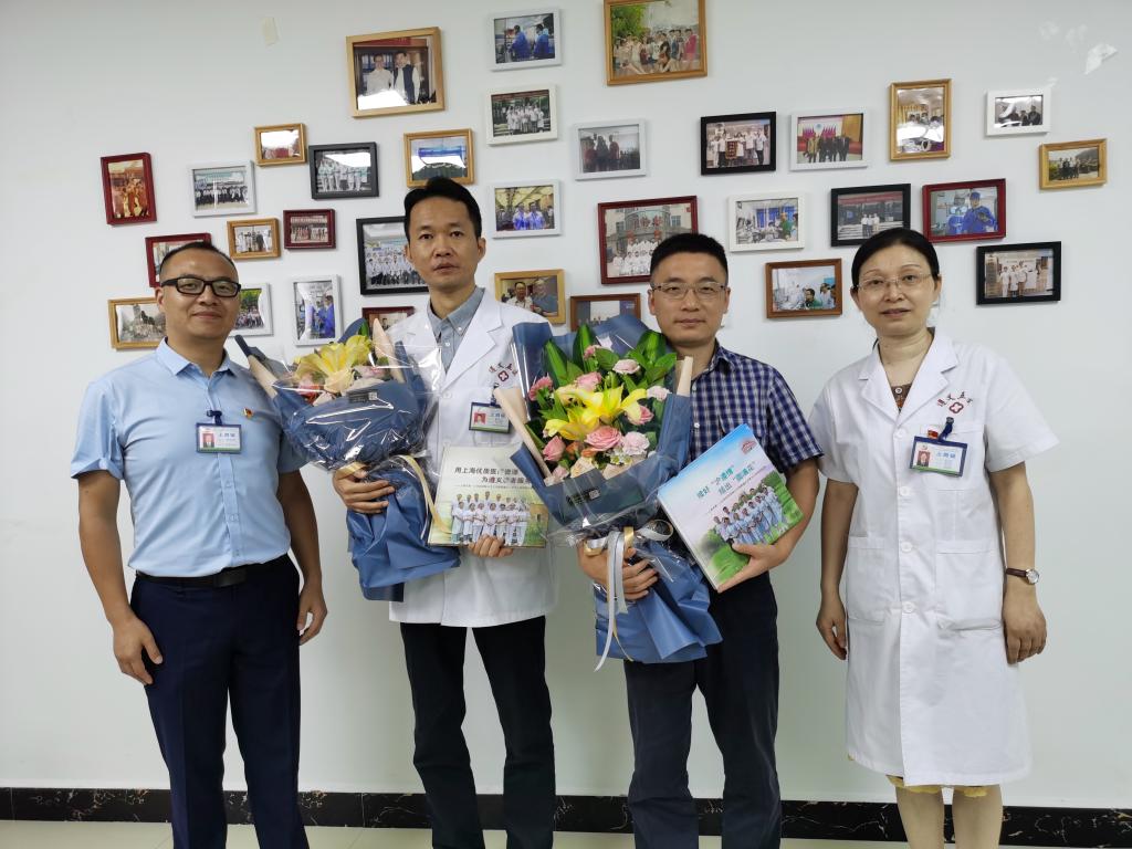 2021年7月11日下午,遵义市五医欢送援遵专家座谈会在消化内科会议室召开,感谢圆满完成援遵任务的上海市第一人民医院第八批援遵泌尿外科专家荆翌峰主任和消化科专家陈达凡主任半年来的倾情奉献。