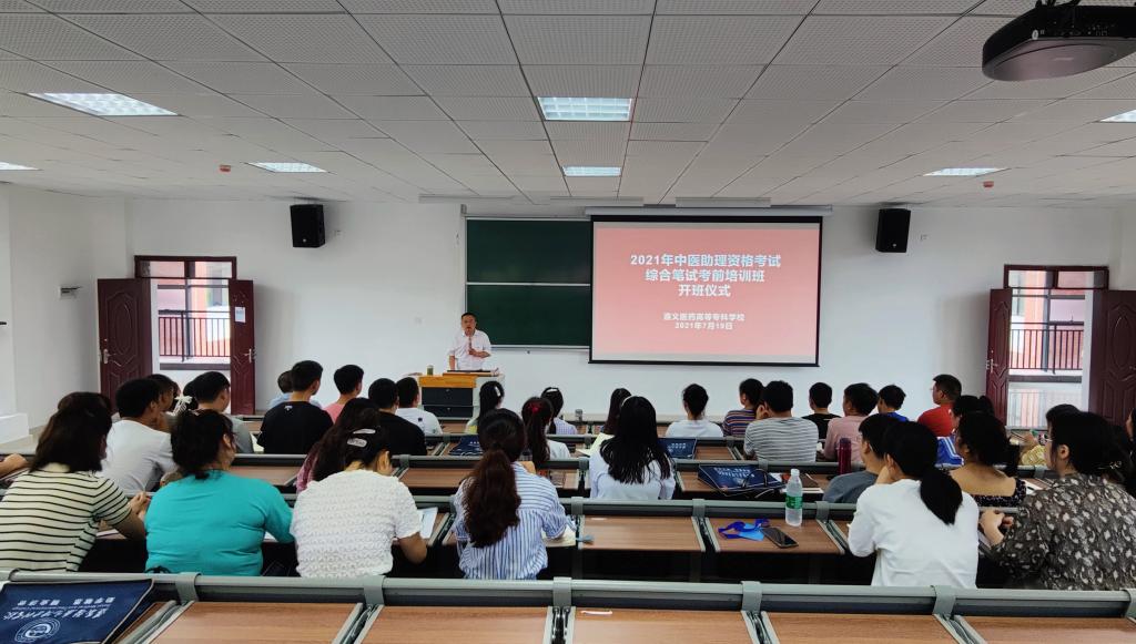 7月月19日,由贵州省中医药管理局主办,我校承办的2021年中医执业助理医师综合理论考试前培训开班式在成教楼301教室举行。学校党委委员、副校长张彪、继续教育处工作人员及全体参培学员参加开班式。
