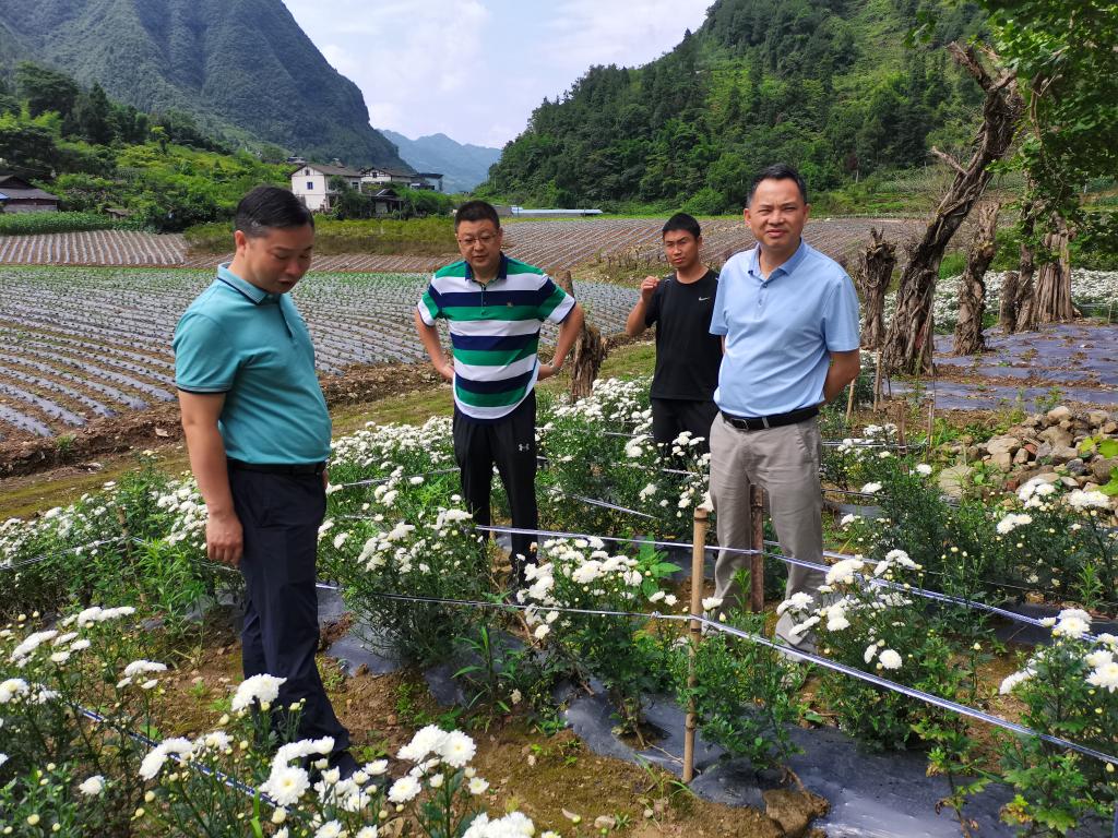 张武晓详细了解了项目选择原因、产业发展规模、市场前景、合作模式及帮扶资金使用情况等内容。他还实地查看了菊花种植项目,文家坝村为推进实施乡村振兴战略,盘活闲散土地资源,发展壮大村集体经济,增加农民收入,村委决定,以“龙头企业+合作社+农户”的模式,与贵州浩思农业发展有限公司深入合作,种植300余亩菊花。为此,学校投入帮扶资金30万元,用于支持文家坝村的菊花产业发展,为村委购买烘干设备,作为村集体资产,出租给公司使用,产生经济效益。